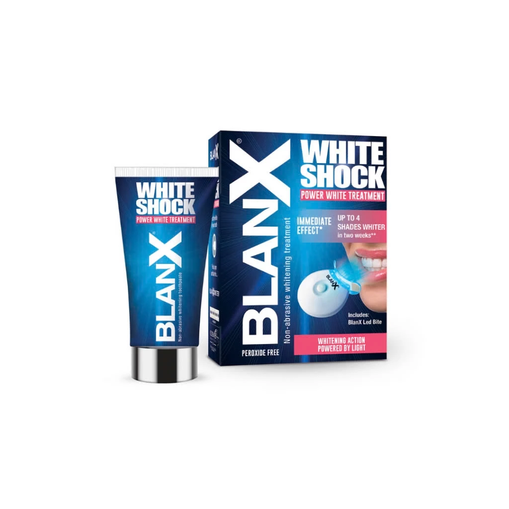 Kem Đánh Răng Điều Trị Làm Trắng Răng BLANX White Shock Treatment + đèn LED Cho Răng Trắng Sáng 50ML
